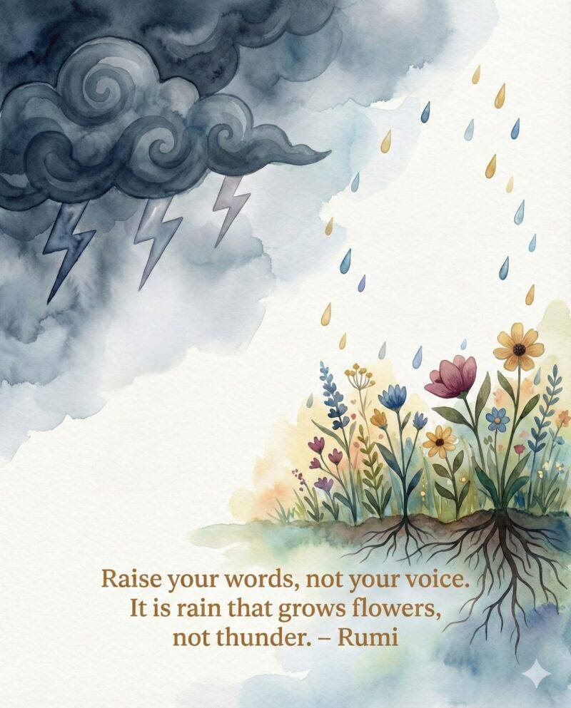 “Raise your words, not your voice. It is rain that grows flowers, not thunder.” — Rumi